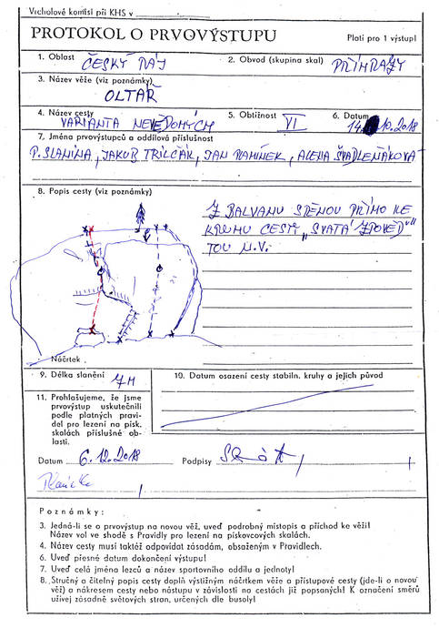 - prvovýstupy povoluje ochrana přírody prostřednictvím OVK.