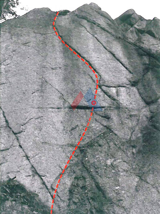 Varianta stropní spárou je projekt. Prvovýstup proveden bez použití magnézia.