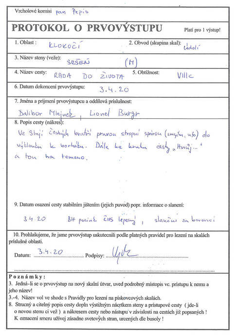 - prvovýstupy povoluje ochrana přírody prostřednictvím OVK.