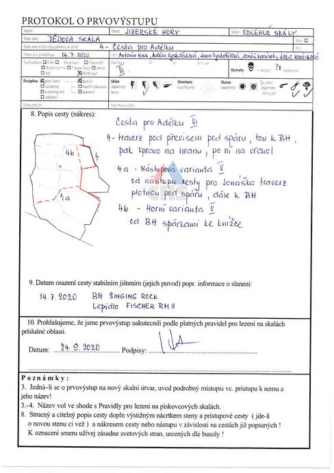 Traverz pod převisem pod spáru, tou k BH, pak vpravo na hranu a po ní na vrchol.