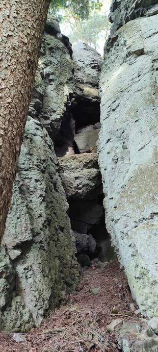Širokým komínem mezi Jalovcovou skálou a cestou "Sever proti Jihu"(Mokrá) na vrchol.