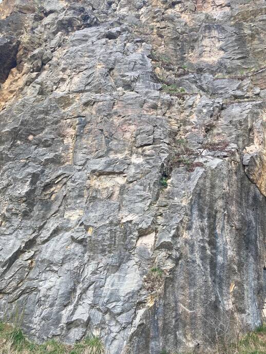 Krátká jištěná cesta po hraně, vpravo vedle cest Jako za mlada a Zajíc a koza.