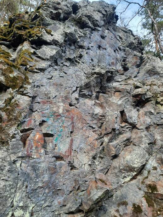 Levou částí stěny (2 bh) a vzhůru (možnost založení vlastního jištění) na vrchol.