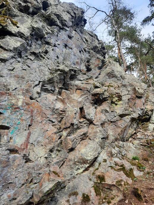 Středem stěny (bh) na polici, výše hladkou stěnkou (bh) na vrchol.
