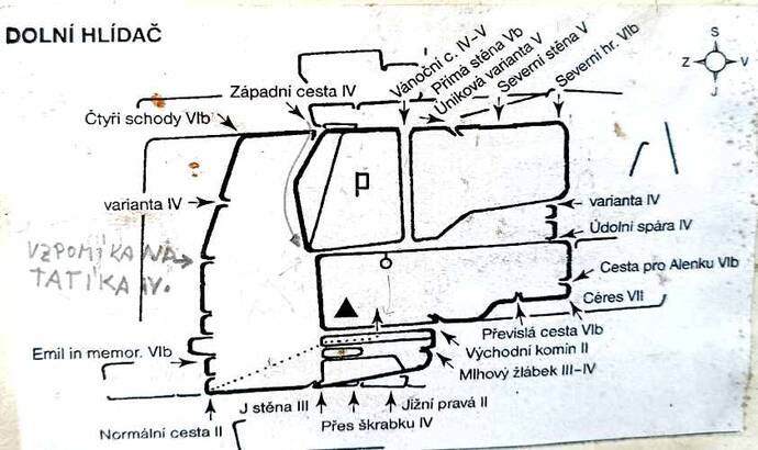 V západní stěně prostřední spárou partyzánskými kroky na balkón a Z celou n. v.