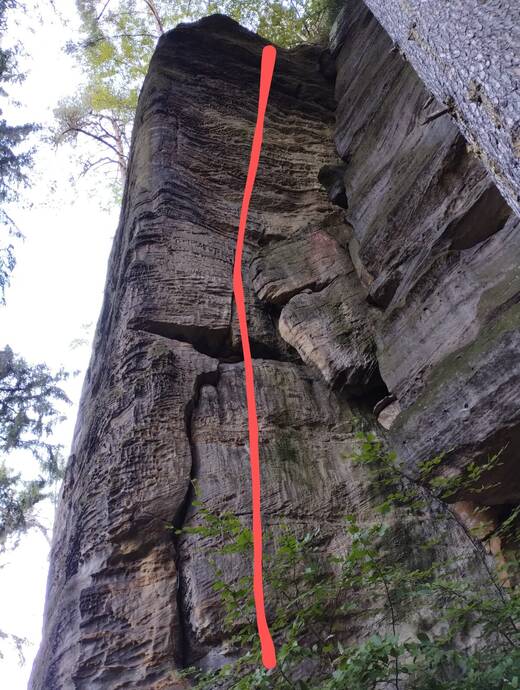 V pravé části stěny vpravo za hranou cesty Život po životě stěnou (5BH) ke sl.