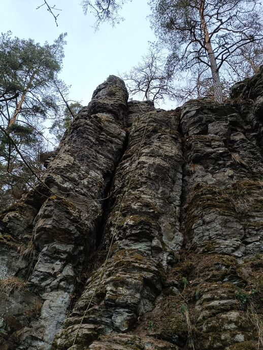 Vpravo od pravého pilíře Opomenuté, středem pilíře bh na plošinu smyčka a středem stěnky bh na vrchol (bh+ mailona)-