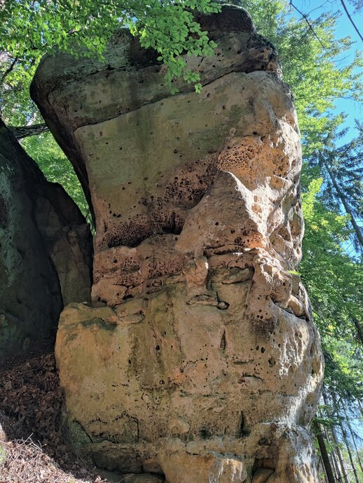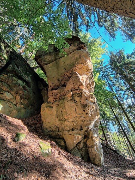 Uprostřed SZ stěny přímo k hodinám, šikmo vpravo k velkým hodinám a přímo převislou stěnou 2 BH n.v.