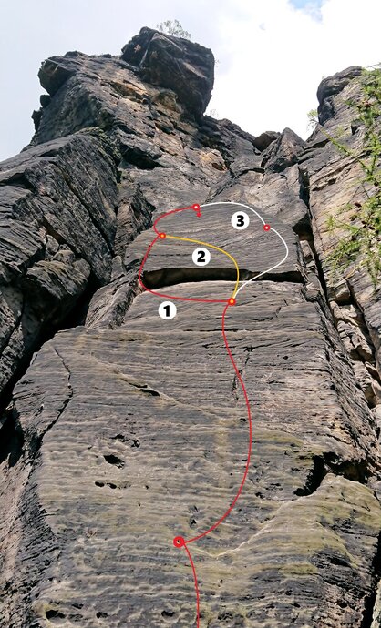 Nad 2. K Anonymní cesty stěnou vpravo při hraně přes BH na vrchol pilíře (vlevo slaňovací K).