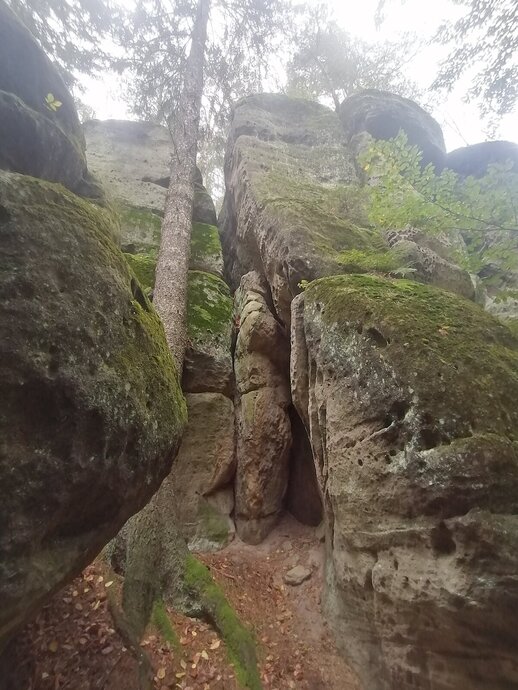 Spárou v koutě ve V stěně do rozšíření a komínem n.t.