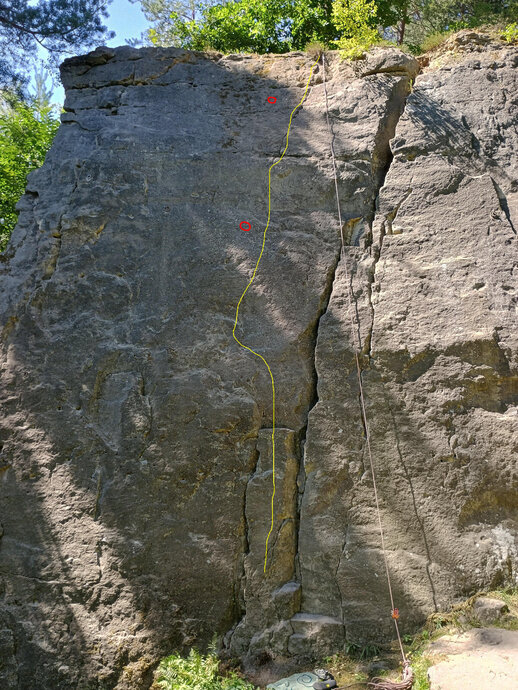 vpravo od cesty Trhák, vlevo od cesty Dvojspára, plotnou a trhlinkou n.v., jištění bh + kruh
