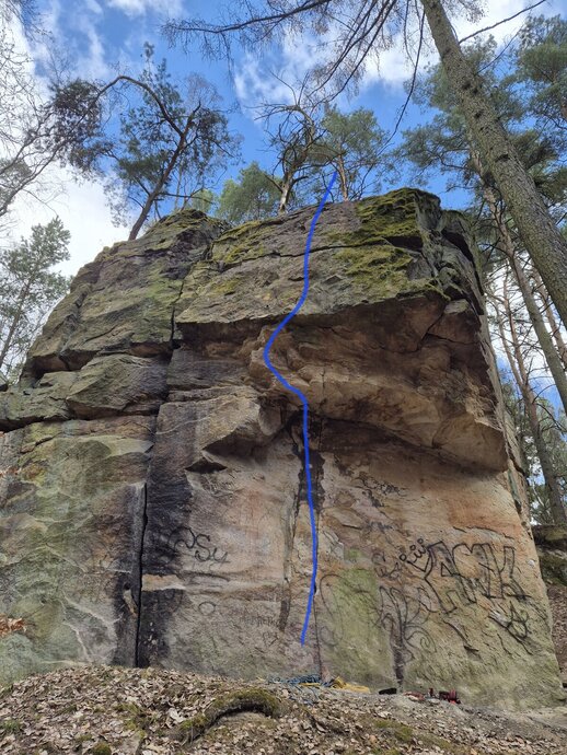 Nástup boulderem "Do převisu" ke K a středem stěnky n.v.