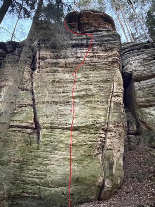 Středem stěny přes 2 K dále ke 3. K cesty "Rumová pralinka" a dále n. t.