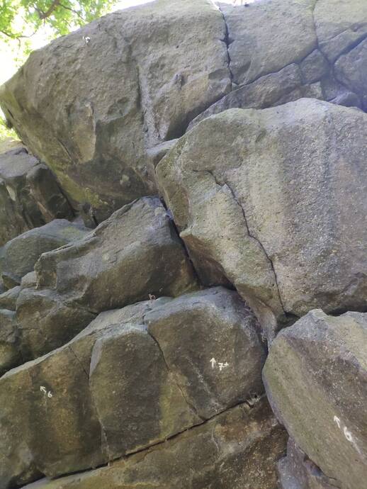 Boulder za převislou kousavou spárku, poté výlez do položené stěnky a jste na vrcholu.