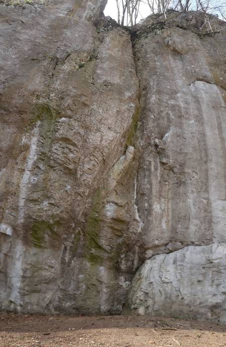 Výraznou spárou v levé části masivu. Bouldr k prvnímu bh.