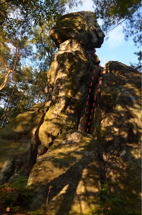 Uprostřed údolní stěny komínem (balvan) na rameno.