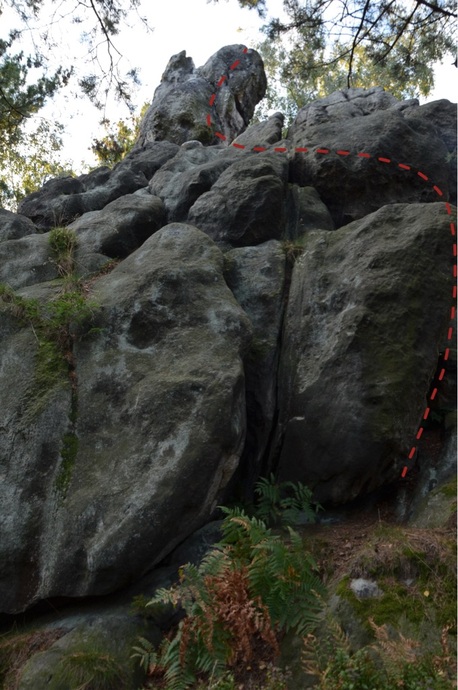 Vpravo v SV stěně spárou na rameno a (post. ) stěnou vlevo na vrchol.