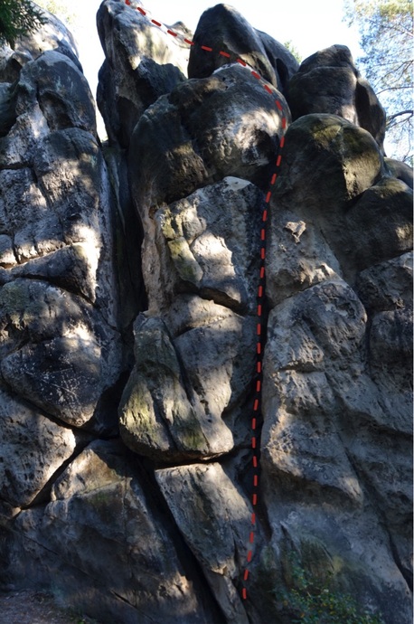 Vpravo od "Staré cesty" solivou spárou na polici a výšvihem na J předvrchol.