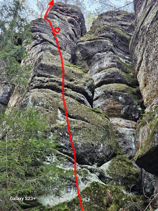 Pilířem ke K, dále vzhůru doleva za hranu a n. t.
