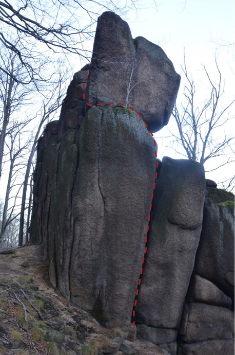 Převislou spárou při levém okraji JZ stěny.