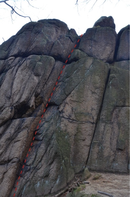 Vlevo od Ruční spáry hladkým koutem k vrcholu.