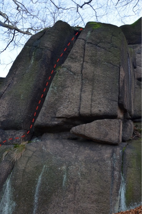 N. v levé části Z stěny výšvihem do výrazného zářezu a jím na vrchol pilíře