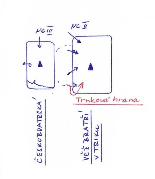 Z plošiny žlábkem na levou údolní hranu a tou n. v.