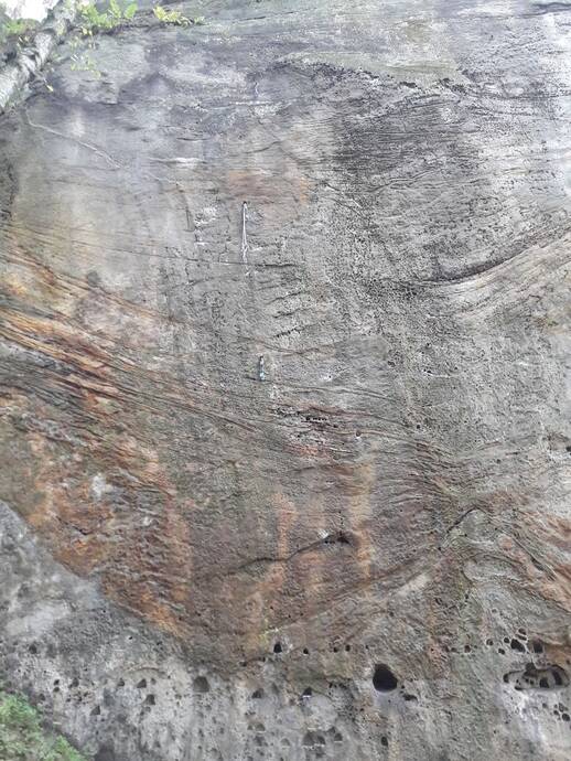 Vlevo od Težké pohody stěnou přes 3 kruhy na polici. Libovolně na vrchol.