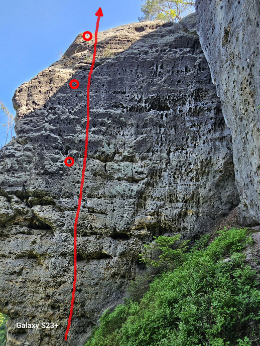 Na poslední blok pravou částí S stěny přes 3 K a slaňovací K n. t.