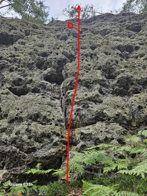 Zcela na začátku hřbetu na samotný blok, stěnou přes K četné hodiny n. t.