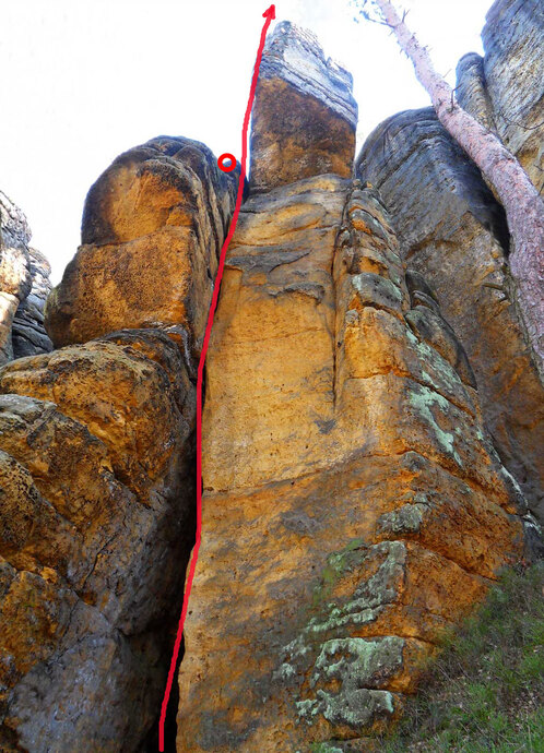 Z údolí komínem, výše spárou na balkón ke K a n. v.