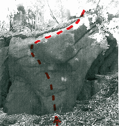 Nástup v údolí plotnou a vpravo přímo (BH) do plotny a tou při hraně k vrcholu stěny.