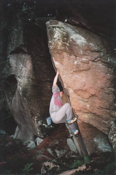 Z převislé hrany stěnou vlevo pod knížku, vzhůru a cestou Ke knížce n. t.