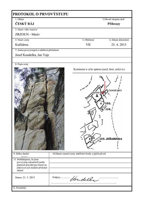 - prvovýstupy povoluje ochrana přírody prostřednictvím OVK.