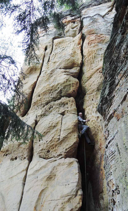 Z náhorní strany k ČARODĚJNICI komínem a spárou (3 smyčky) n. t.