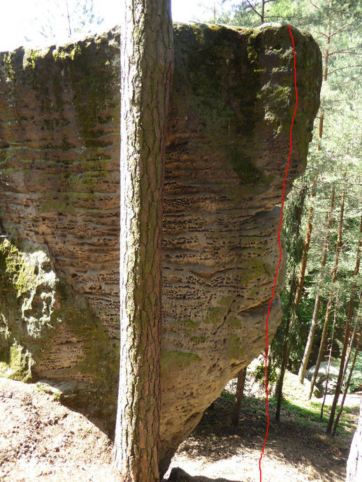 Převislou hranou vpravo od stromu n. v.