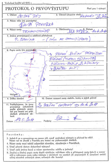 - prvovýstupy povoluje ochrana přírody prostřednictvím OVK.