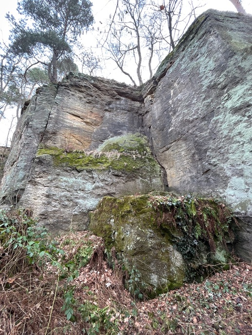 Hříště zmíněné v průvodci tam momentálně není, prostor pod skálou je zarostlý,