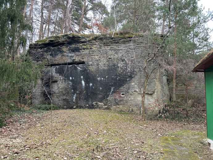 - nástup "ohništěm" doprava římsou do mělkého zářezu a jím n. v.