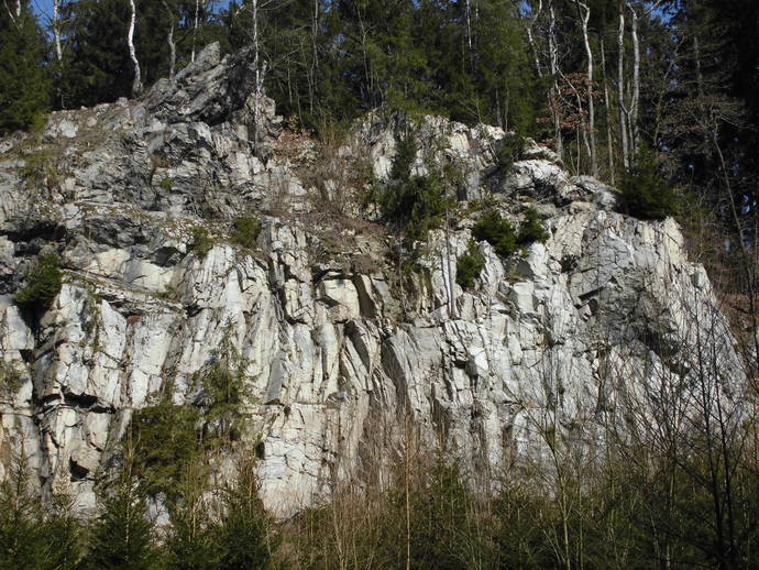 Přibližně 25 metrů vysoká a 100 metrů dlouhá skalní stěna nacházející se v malebném údolí Příseckého potoka, pravého přítoku řeky Jihlavy. Sportovnější cesty se nachází v pravé části stěny.