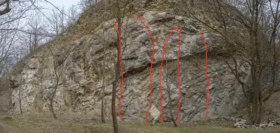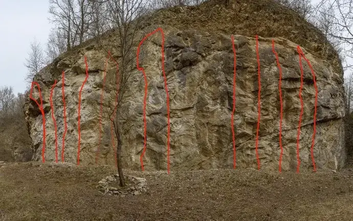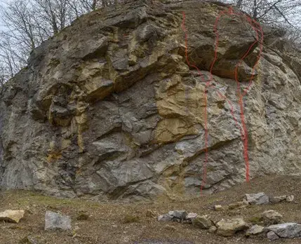 4)Appaloosa, ***, 6b+, 11m 6)Fjordský kůň, ****, 6a+, 11m - Vlevo od c. Krvavá boule.