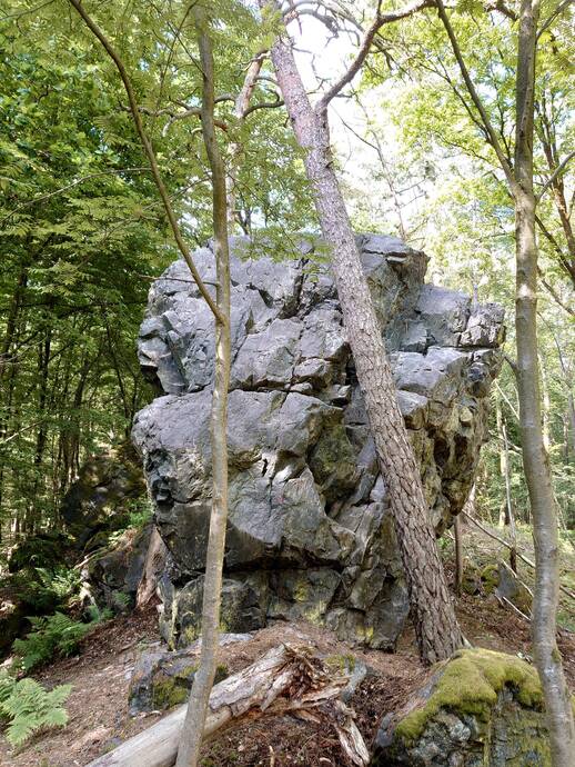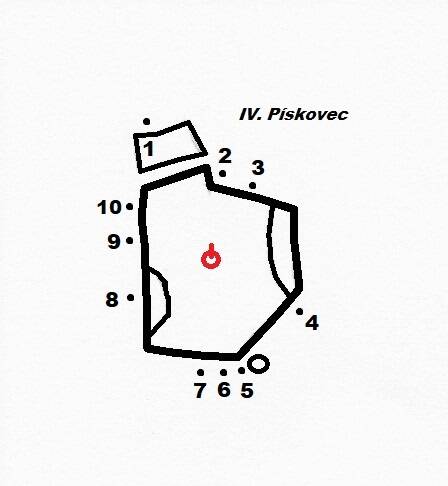 - Průlezem za stromem, šikmo doprava vzhůru (bh) na vrchol.