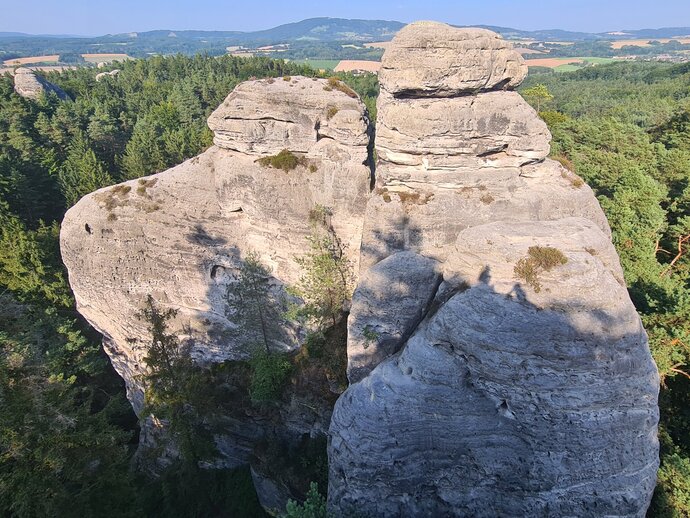 • Pilířovou cestou na polici a zužujícím se komínek přímo na pilíř ke kruhu Pilířové cesty.