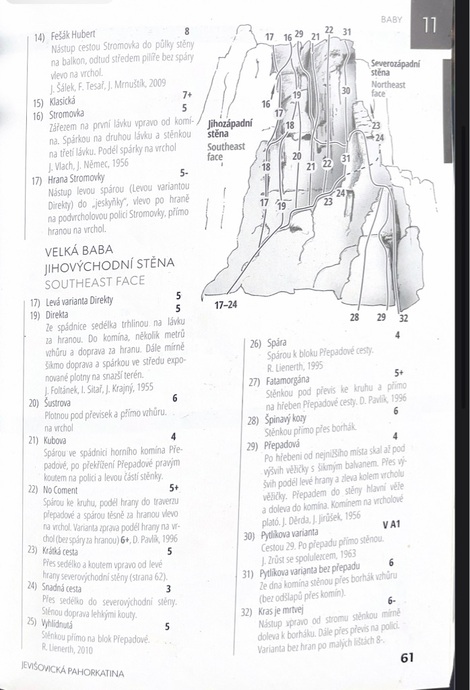 - Stěnkou přímo přes 1. bh ke slaňáku. Cesta vede na údolní předskalí Valké Baby. Stěnkou přímo přes borhák.