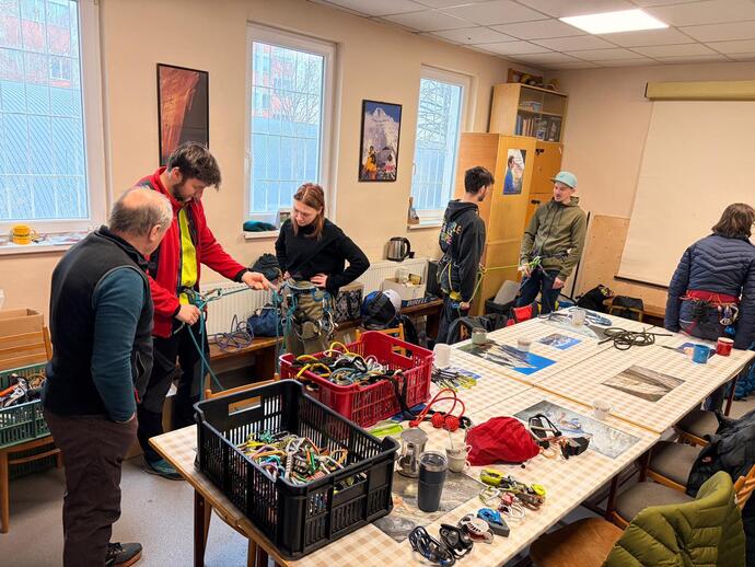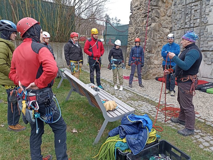 ▪ teoretická část – bezpečnost pohybu na stěně, druhy lan, karabin, vedení lana, druhy