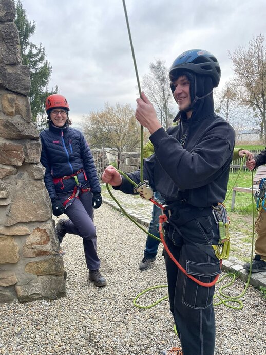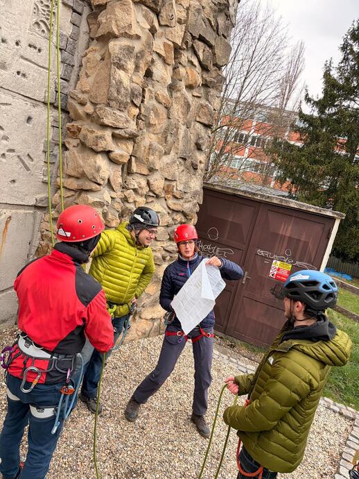 Jednou z věcí která byla pro některé nová bylo rušení vratného bodu spuštěním. Naše lokální skály toto neumožnují a jako tradiční oddíl dobíráme často nahoře.